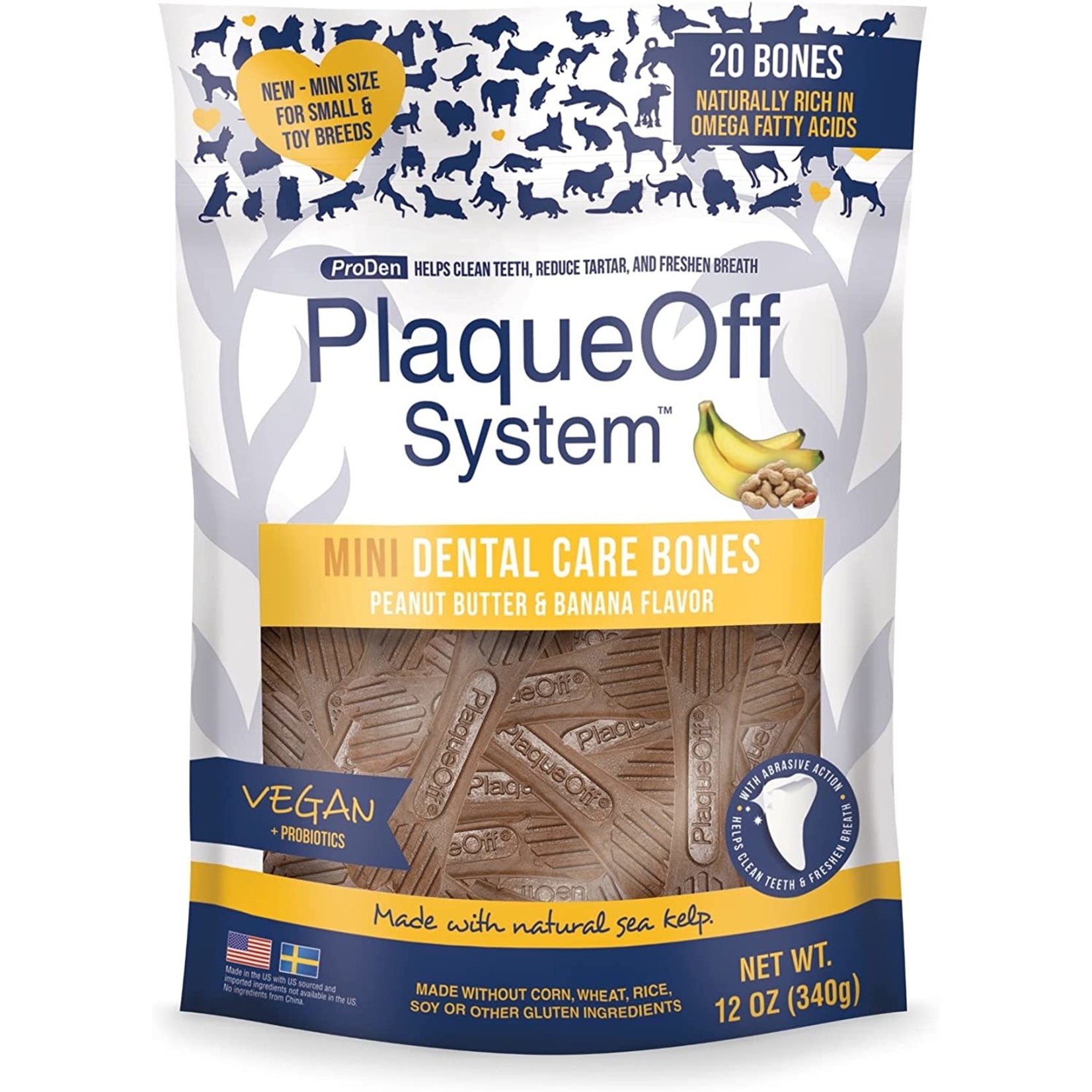 ProDen PlaqueOff® Mini Dental Bones are dog chews with the PlaqueOff System® which help clean plaque and tartar by abrasive action.